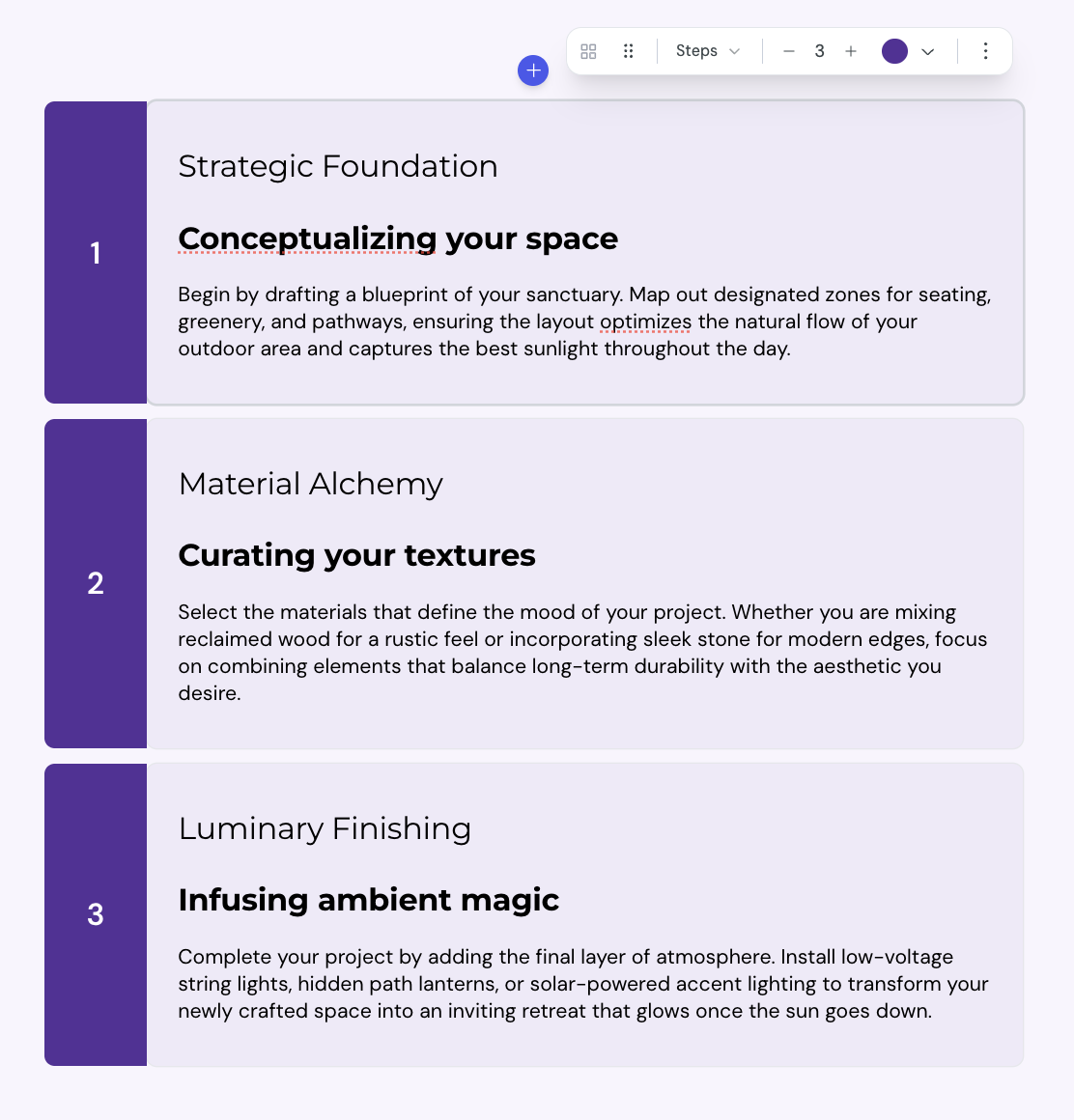 To edit a step, select inside the content area and type or paste your content.