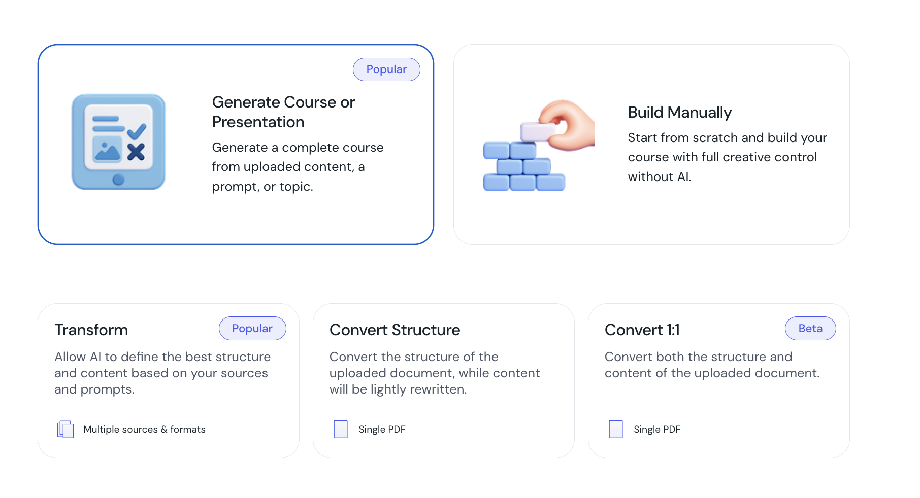 After generating your course, you can still easily add and re-generate the lesson/card by inputting a new lesson/card objective.
